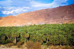 The deep green palm groves covering the mountain oases of the Saharan Atlas as well as Tozeur and Nefta.
