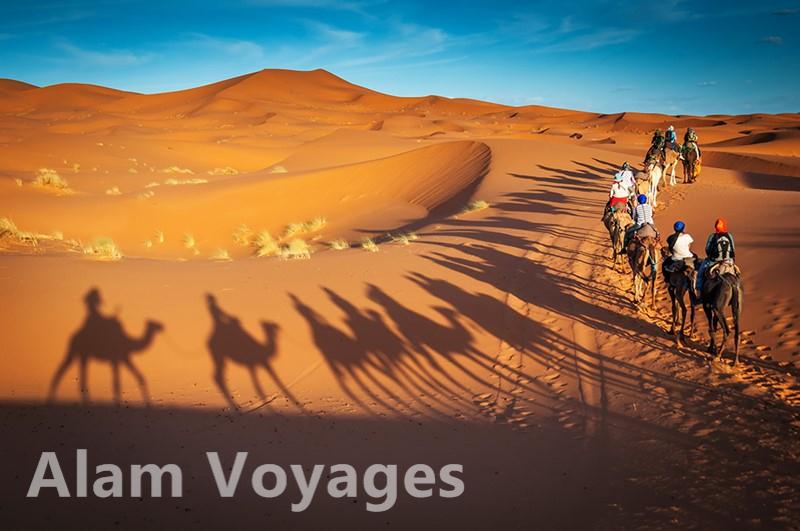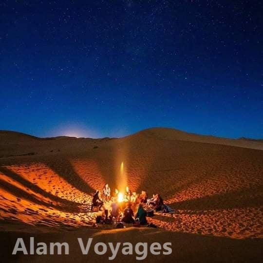 - Installation des tentes et deuxième nuit de dépaysement en plein désert ou le seul bruit que vous entendrez sera les chants des chameliers et leurs histoires.
