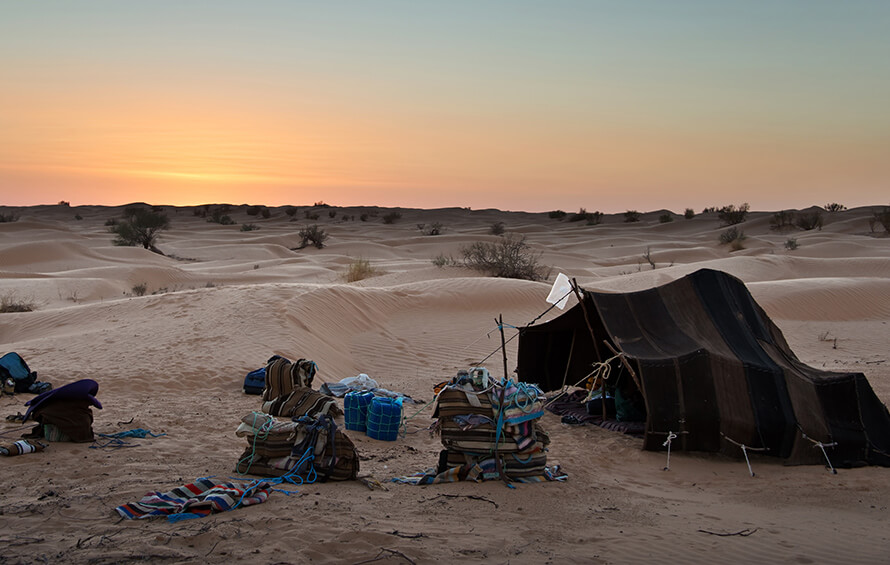 Un voyage dans les temps pour découvrir l’esprit des caravanes et le trek… Nous mettrons à votre disposition des hommes d’expérience nés avec du sable dans les yeux et ayant grandi dans cette mer infinie de Sahara. Des hommes qui connaissent et maîtrisent parfaitement les lois qui régissent le désert tunisien et ses cotés fascinants! Aucune expérience n’est comparable à une méharée au cœur de désert du Sahara au rythme des pas cadencés de nos fidèles dromadaires. La journée sera ponctuée essentiellement par le lever et le coucher du soleil, ces deux moments absolument uniques à vivre en pleine conscience.