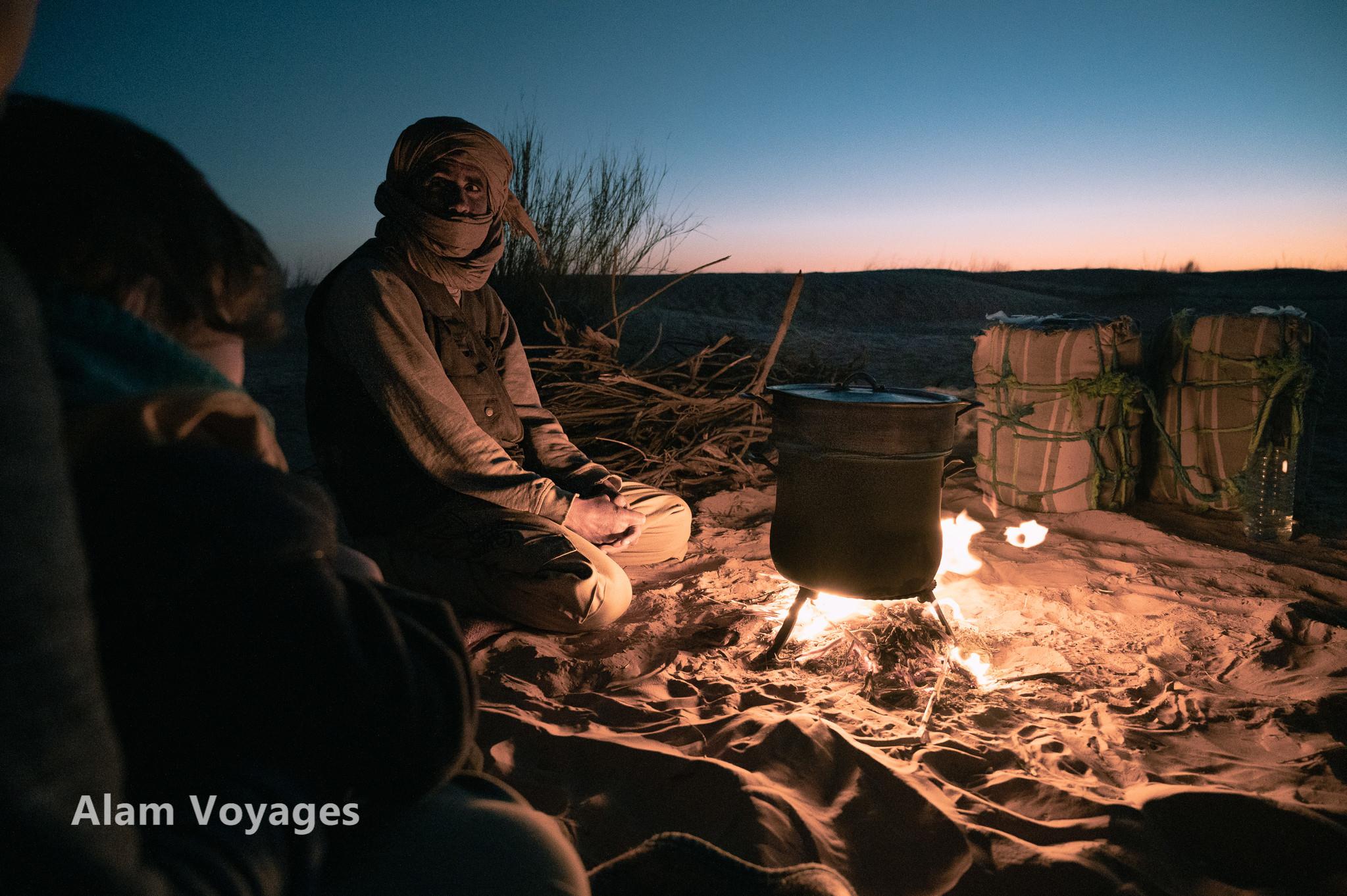 - Installation des tentes et préparation de votre dîner au feu de bois où vous assisterez à la préparation du pain de sable.