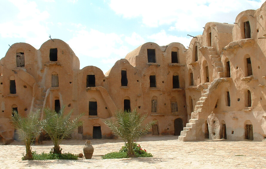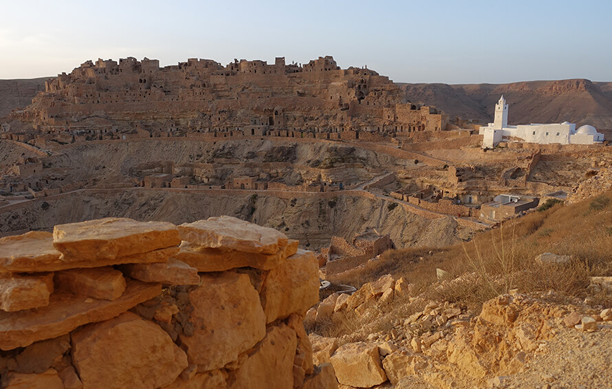 - Continuation vers la ville de Tataouine, temps libre au marché très coloré puis direction le village montagneux de Chenini.