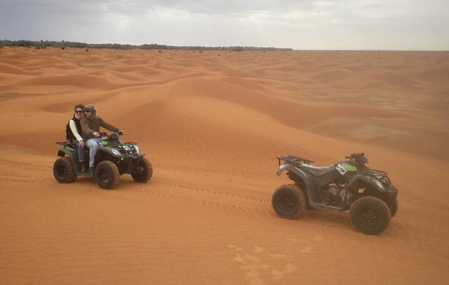 dunes de sable fin à perte de vue, d’une balade à dos de dromadaire ou quad, d’une nuit à la belle étoile où la voie lactée semble à portée de main…. D’une soirée berbère au vrai sens du mot….