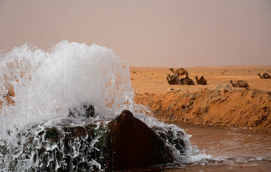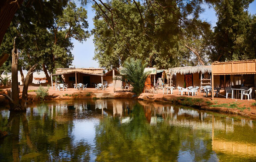 une oasis exotique; magnifique avec ses campements et sa source d’eau.