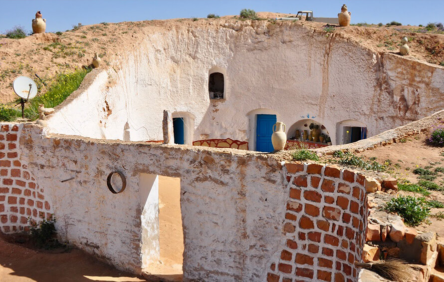 lunaire (décors du film Star Wars) et visite d’une famille dans une maison troglodytique.