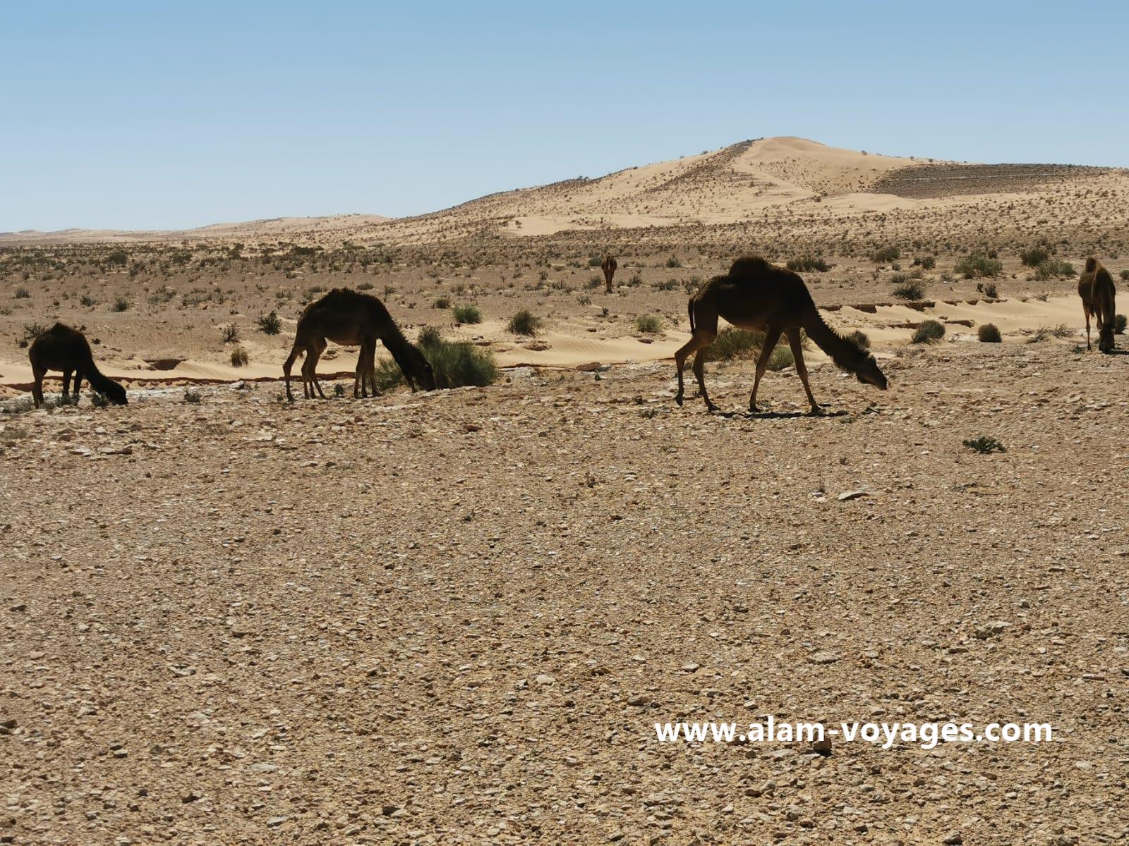 · Départ de la chaussée romaine seule route qui relie Djerba avec le continent, continuation vers Ksar Ghilaine la plus saharienne des oasis encerclé par un Erg Oriental en passant Médenine via le grand désert de cailloux de la région de Dahar , possibilité d’une promenade à dos des dromadaires ou en quad pour admirer les immenses dunes de sable ( facultative++payable sur place) ou détente au bord de la source d’eau chaude .